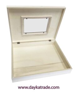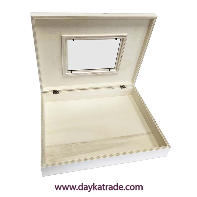 En madera, para que puedas decorarlo a tu gusto con pinturas ARTIS, barnices, papeles Dayka etc.…Ventana de 18×13 cm Ideal para álbum lazo 2027005.