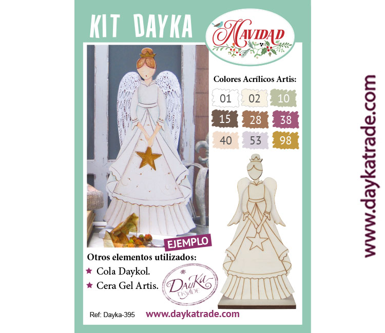 Dayka-395 El kit contiene angelita con estrella en las manos en madera de chopo de Dayka Trade.