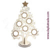 Árbol en madera con estrellas y enganche para colgar una bola de metacrilato.