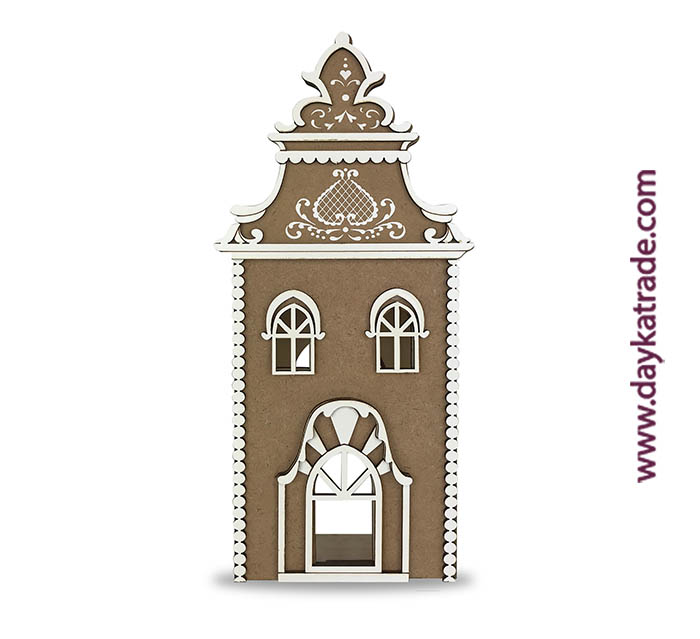 Casita de Jengibre para decoración de Navidad – El kit contiene estructura de madera y complementos en BLC para crear efecto relieve.
