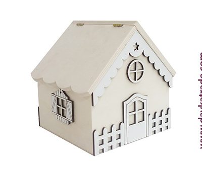 04030229 Caja casita de madera con elementos de, puerta, ventanas, vallas en tablero lacado blanco Ref.04030229 + BLC-04030229