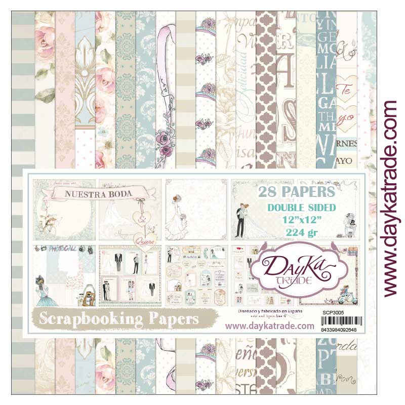 28 papeles de 30,5×30,5 cm aprox. De 224 gramos a dos caras.