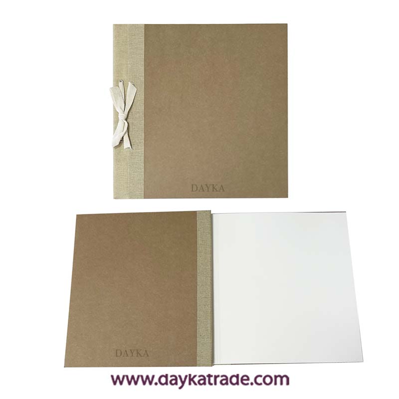 ref: 2027031Con tapas de cartón craft, lazo y hojas blancas  interiores de 250 gr. de gran calidad. También es ideal para libros de firmas. También lo puedes encontrar con caja ref: 0431092A
