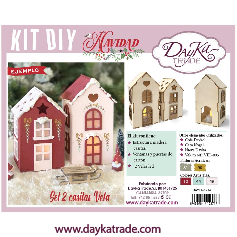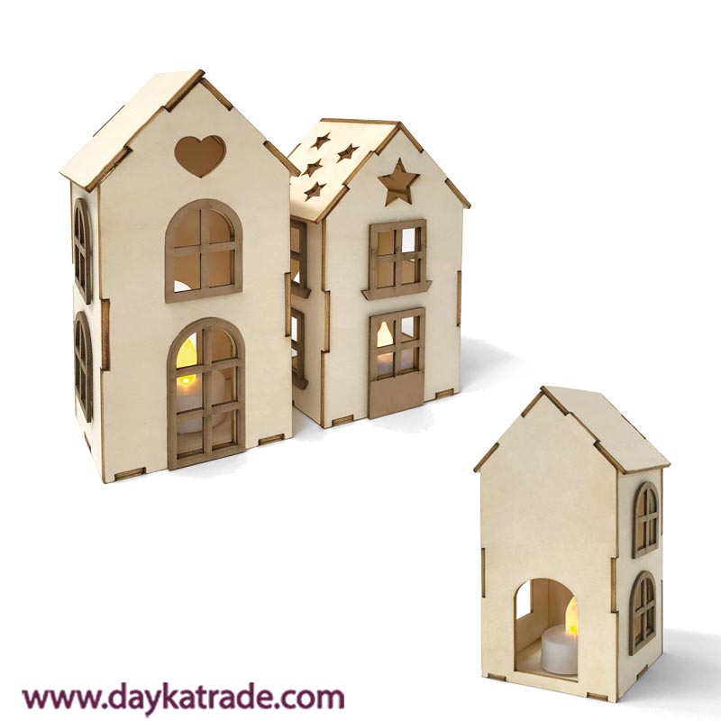 Siluetas de madera y cartón para montar y 2 velas led.