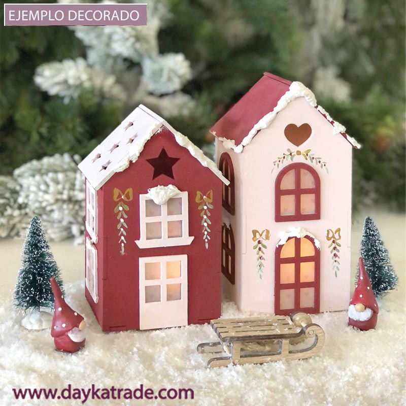 Medidas: una casita 8,7x17x7 cm y otra casita x8,5×14,7×7 cm (ancho, alto, fondo)