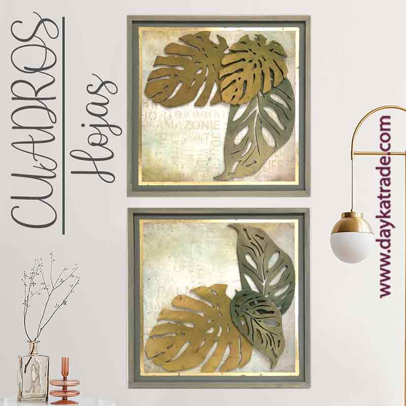 Dayka-1230 Set De Dos Cuadros De Hojas Tropicales