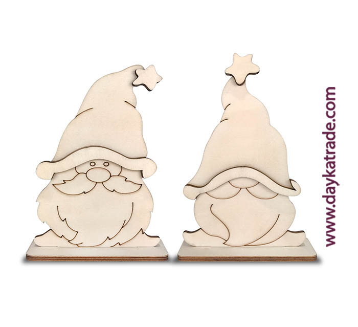 Contiene Pack/Conjunto de gnomos de madera y siluetas en relieve de madera.