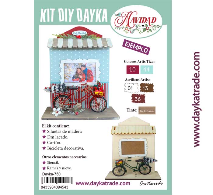 Dayka-750 Contiene siluetas de madera, dm lacado, cartón y bicicleta decorativa.