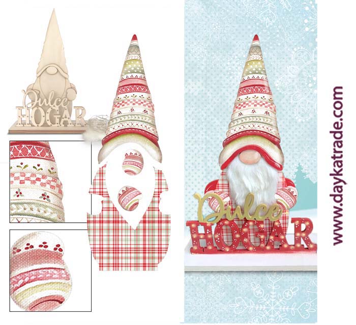 Crea tu propio gnomo con este kit: contiene nuestra tela pre-diseñada en color rojo (PREDayka-847B) para un resultado mucho más original.