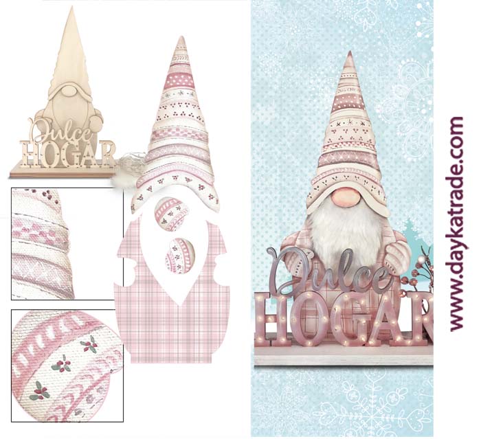 Crea tu propio gnomo con este kit: contiene nuestra tela pre-diseñada en color rosa (PREDayka-847A) para un resultado mucho más original.