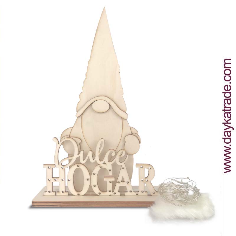 Contiene siluetas de madera, luces LED para crear el contorno de las letras y tela para recrear la barba.