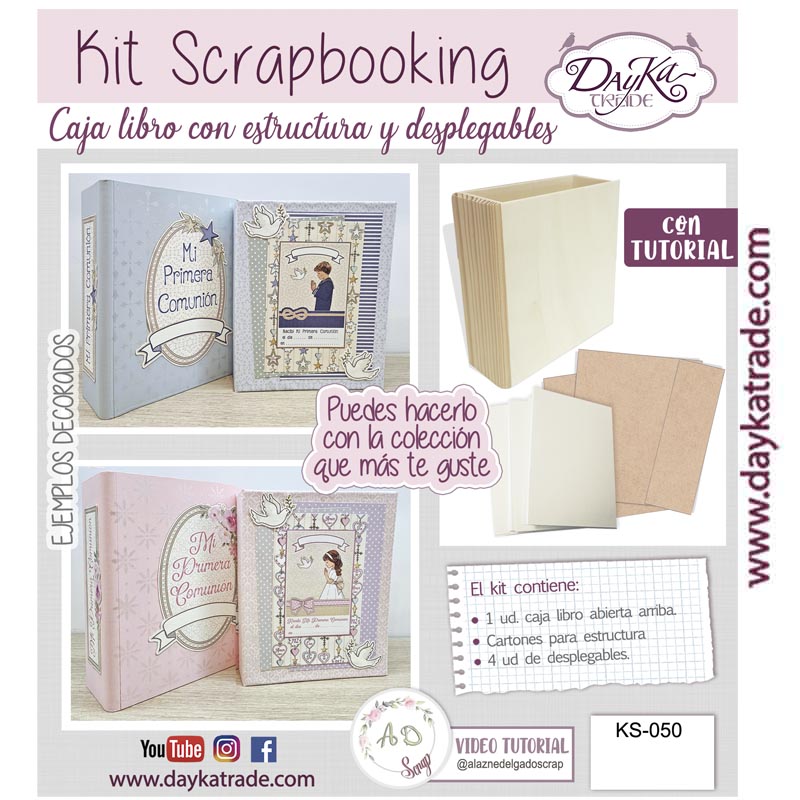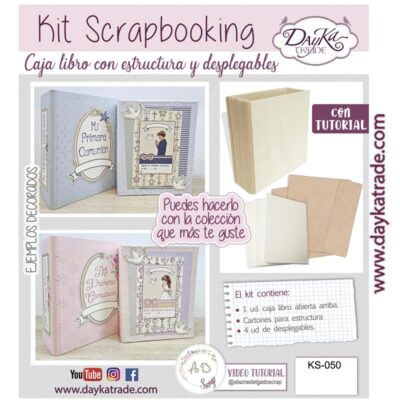 Crea y decora esta caja libro para colocar de pie con apertura superior, estructura, desplegables y decórala con los papeles de la colección que más te guste (no incluidos en el kit) siguiendo el VIDEO TUTORIAL de Alazne Delgado. El kit contiene:1 ud. caja libro abierta arriba. 4 ud de desplegables cartón para estructura CON VIDEO TUTORIAL Medidas caja libro: 17,5×18,5×6,7 cm Medidas del álbum: 17,5×14,7 cm