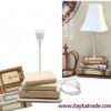 En el kit se incluye las bases de los libros, prediseñados, tubo, casquillo , enchufe, cable e interruptor.(la tulipa no está incluída)