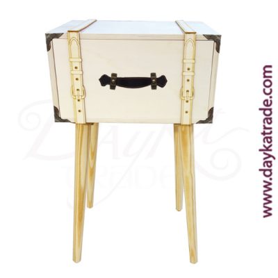 Mesilla retro de madera con elementos decorativos de maleta.