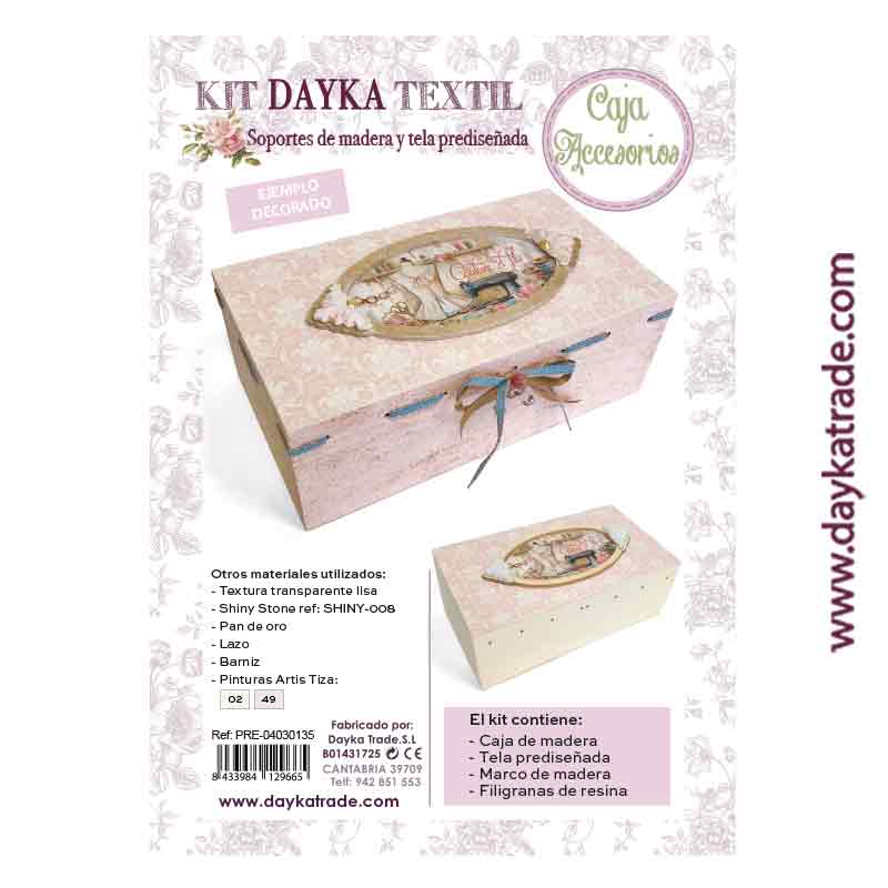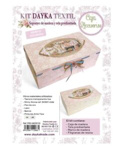 Caja de costura con tela, marco y filigranas de resina. Medidas: 27 x 9,7 x 15 cm. Ideal para pintar con pinturas y productos Artis de Dayka.