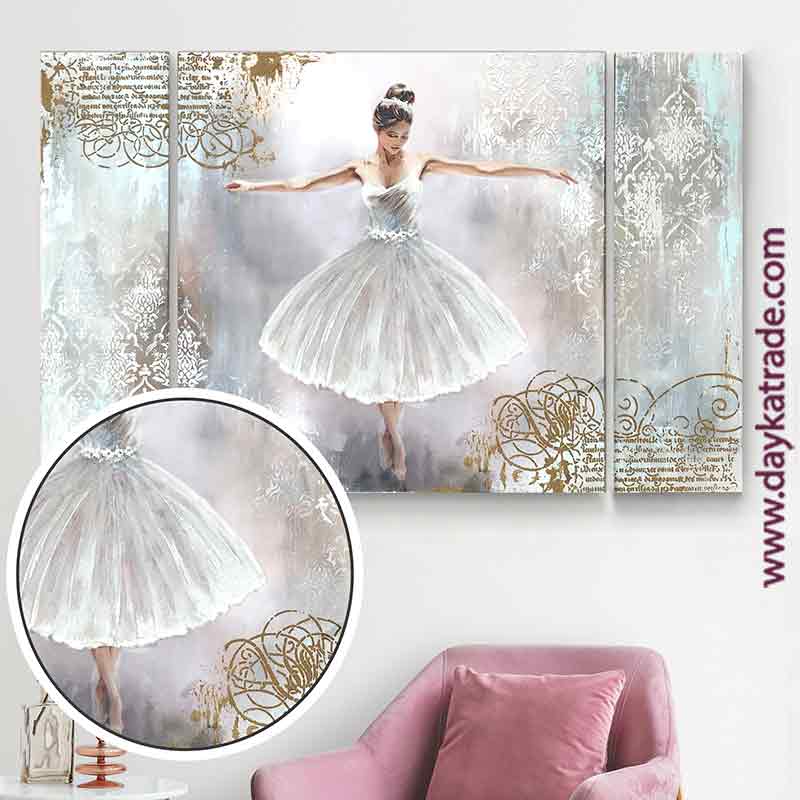 Cuadro tríptico de bailarina de ballet de frente