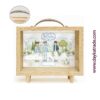 Hucha de madera cristal y asa de metal. Incluye tela prediseñada de comunión. Un regalo o recuerdo muy especial.