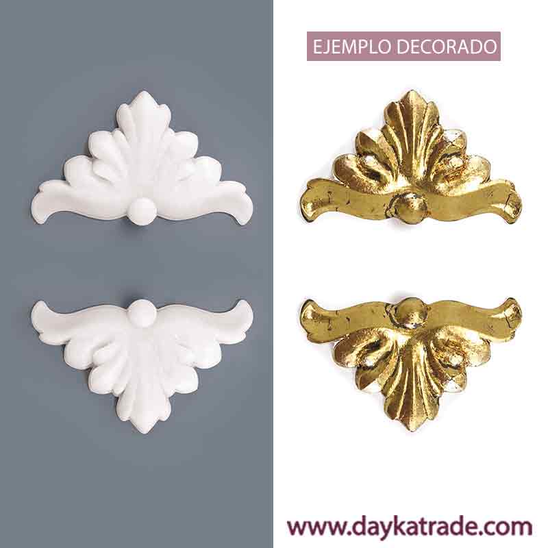 Filigranas de resina. Figura decorativa de dos ornamentos ideal para pintar y decorar con pinturas Artis Dayka. Disponible en tres medidas: RES-005G: 9 x 5,5 x 0,5 cm RES-005M: 6,7 x 4 x 0,5 cm RES-005P: 4,5 x 2,5 x 0,2 cm Referencia: RES-005