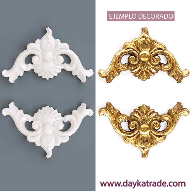 Filigranas de resina. Figura decorativa de dos ornamentos ideal para pintar y decorar con pinturas ArtisDayka. Disponible en tres medidas:RES-007G: 12 x 7 x 1,2 cm, RES-007M: 9 x 5 x 1 cm, RES-007P: 6,5 x 3,5 x 0,4 cm, Referencia: RES-007