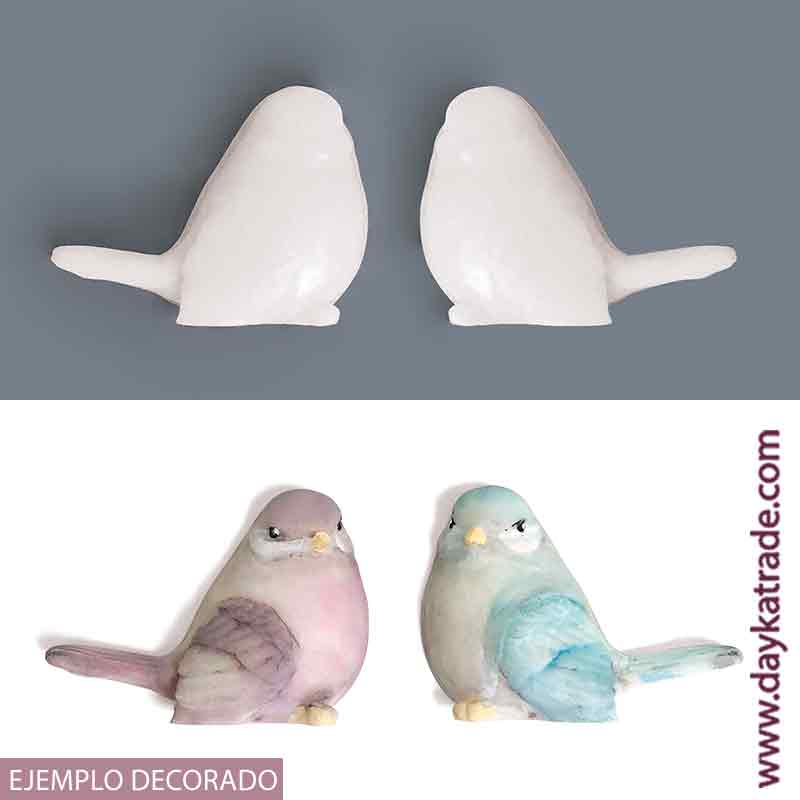 Figuras de dos pajaritos planos de resina. Figura decorativa de dos pájaros ideal para pintar y decorar con pinturas ArtisDayka. Medidas:RES-010G: 5 x 4 x 1,5 cm RES-010P: 3,2 x 2,6 x 1 cm Referencia: RES-010