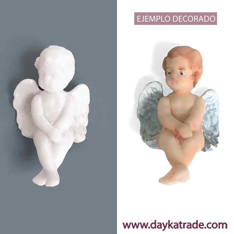 Figura de angelito sentado de resina. Figura decorativa de ángel sentado de resina ideal para pintar y decorar con pinturas ArtisDayka.Medidas: 4,5 x 6 x 3,5 cm