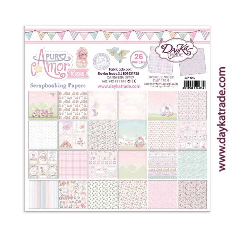 Kit de papeles para Scrapbooking “Puro Amor Rosas” Dayka.