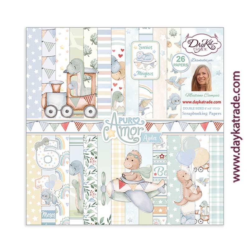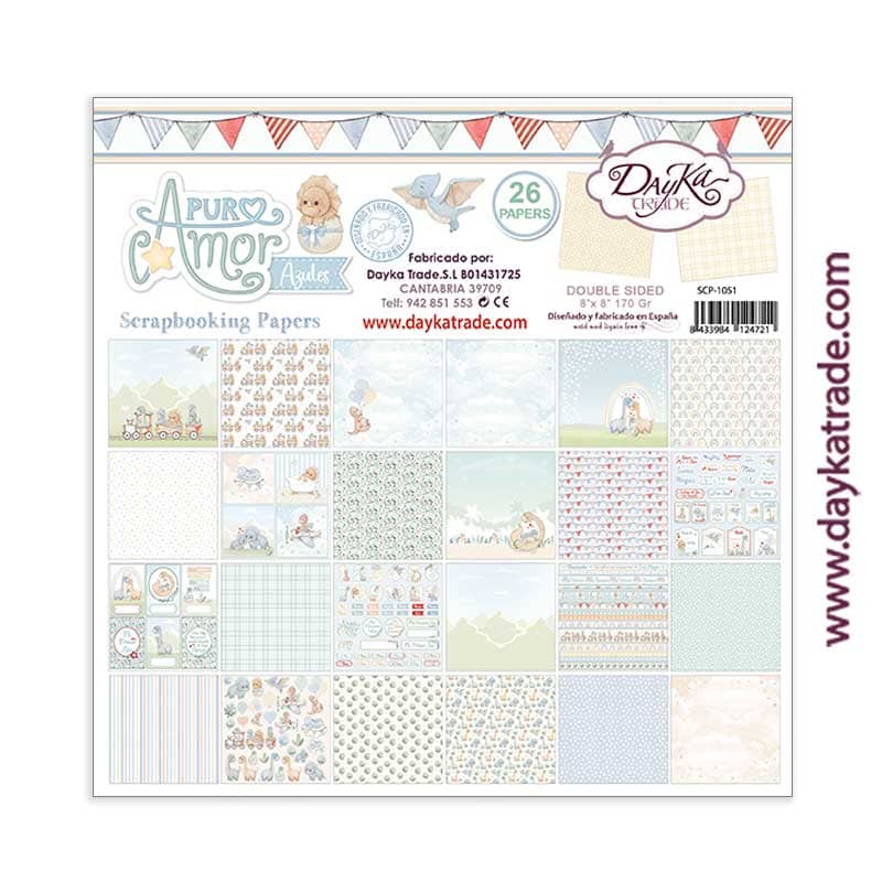 Kit de papeles para Scrapbooking “Puro Amor Azules” Dayka.