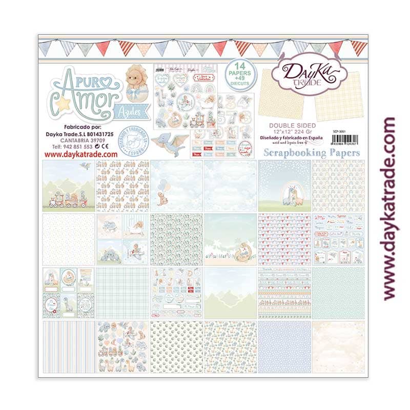 Kit de papeles para Scrapbooking “Puro Amor Azules”
