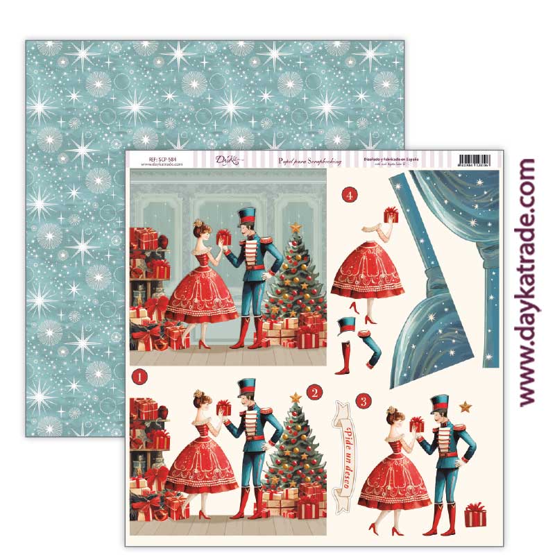 Papel para Scrapbooking Dayka, delantera de escena de soldadito de plomo con bailarina para tridimensional y fondo de estrellas.