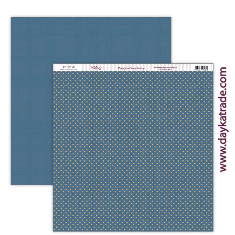 Papel para Scrapbooking Dayka, delantera de lunares y trasera lisa efecto textura de tela.