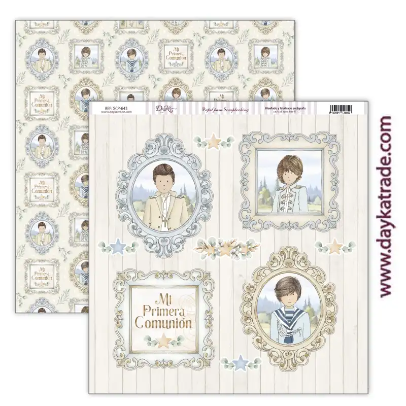 Papel para Scrapbooking Dayka, delantera de marcos con niños de comunión. Fondo de marcos.