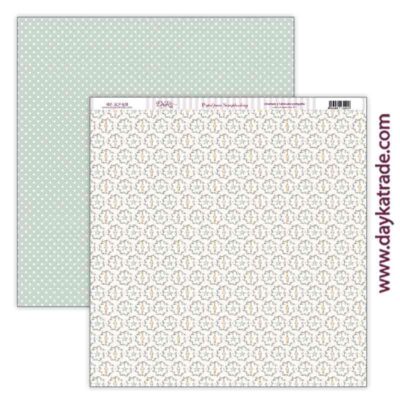Trasera de lunares verde. Papel a doble cara Dayka, diseñado y producido en España. Papel 224 gr.Ideal para tus proyectos de scrap comunión.