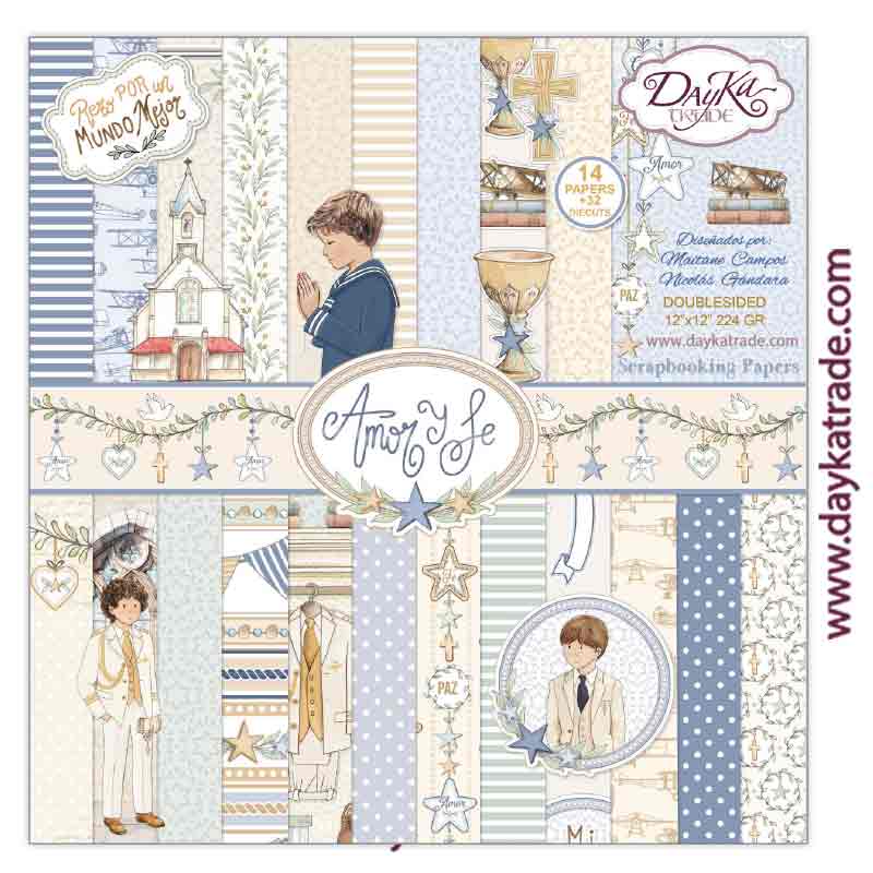 Kit de papeles para Scrapbooking “Amor y fe” Azules