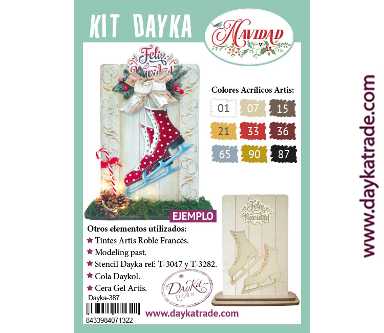 Dayka-387 El kit contiene tabla con patines y peana en madera de chopo para decorar de Dayka Trade.