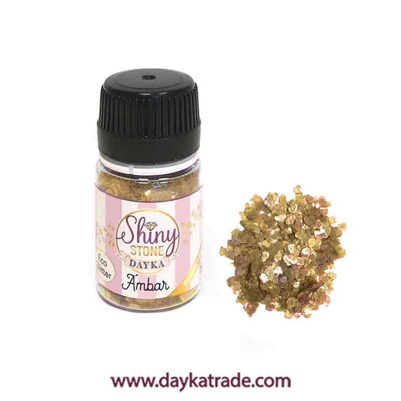 Escamas de minerales ecológicos Shiny Stone Ámbar. Dale un toque mágico a tus proyectos con nuestras escamas de minerales ecológicos Shiny Stone Ámbar de Dayka. Son ideales para manualidades, decoración, maquillaje y cualquier proyecto creativo que necesite un toque especial. ¡Haz que tus creaciones resalten y deslumbren con nuestras escamas de purpurina ecológica Shiny Stone Ámbar!Características:– Material: minerales ecológico y biodegradables– Colores: Tonos vibrantes inspirados en la ámbar– Usos: Manualidades, decoración, maquillaje y más– Modo de empleo: Adhiere las escamas a cualquier superficie utilizando adhesivo shiny stone.– Cantidad: 20 gr.Estas escamas brillantes están hechas de materiales sostenibles, lo que las convierte en una opción perfecta para quienes buscan cuidar el planeta mientras añaden un poco de brillo a su vida. Además, al ser ecológicas, puedes disfrutar de su brillo sin preocupaciones.¡Atrévete a brillar de manera responsable y añade un poco de Shiny Stone Ámbar a tu carrito hoy mismo!