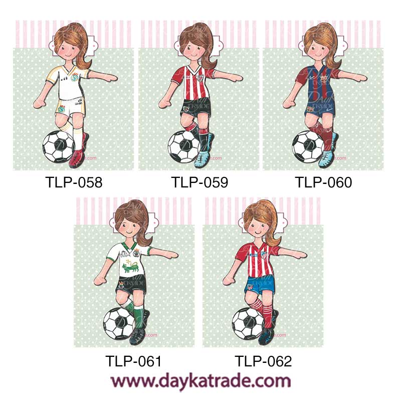 Siluetas pintadas de jugadoras de fútbol. Silueta en madera lacada pintada de niña jugadora de fútbol. Ideal para decoración de fiesta temática de fútbol, scrapbooking, cubiletes, cajas, álbum de fotos, etc. Además, es un maravilloso recuerdo para los amantes del Fútbol y podrás elegir la camiseta de tu equipo de fútbol favorito. Medidas:14 cm de alto. Modelos:TLP-058: Madrid, TLP-059: Bilbao, TLP-060: Barcelona, TLP-061: Santander, TLP-061: Madrid. Puedes decorarlo con con nuestras pinturas y productos Artis.