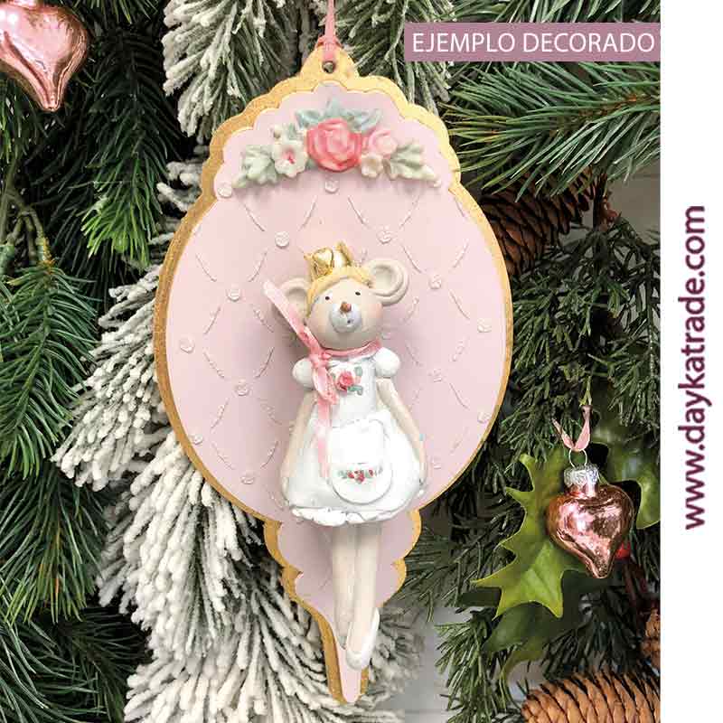 Bola para árbol de Navidad con repisa y resina de flores. Contiene silueta de DM de adorno para árbol de Navidad, repisa y ornamento de flores de resina.Medidas: 22 x 11,5 cm. Utilizada en el ejemplo (no incluida) figura de marmolina ref.:1393068. Puedes decorar este producto con nuestra gama de pinturas ArtisDayka.