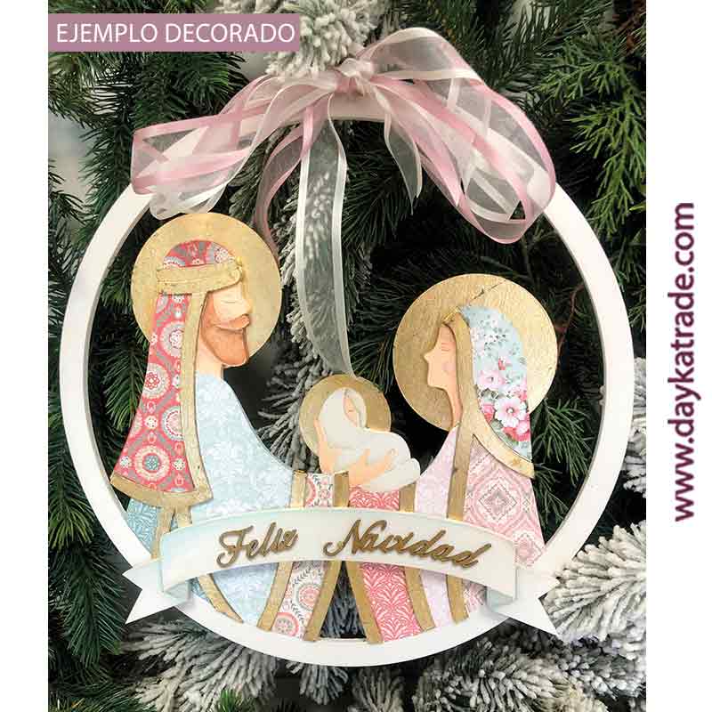Portal de belén en círculo. Contiene silueta de DM de nacimiento en círculo.Medidas: 33 cm. Puedes decorar este producto con nuestra gama de pinturas ArtisDayka.