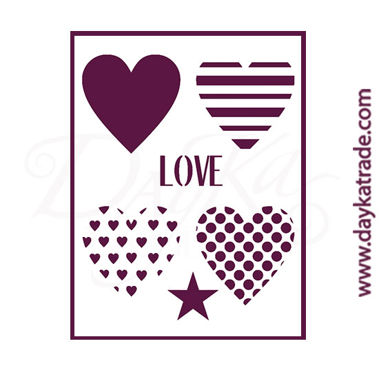 Stencil A4 Dayka Corazones + Love + estrella